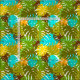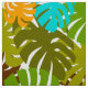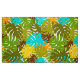 Patrón tropical retro de hojas de monstera en verde, azul, naranja y amarillo.