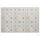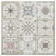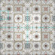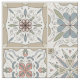 Tela con una serie de nueve (9) baldosas de estilo español diferentes en un patrón de mosaico de color neutro.