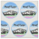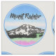 Un ilustracion de arte de línea blanca y negra del Monte Rainier y el valle de Jackson Hole. El lago y el cielo pintados con acuarelas azules crean un paisaje montañoso dramático.
