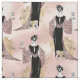 Este detallado diseño inspirado en el Vintage francés de 1920 muestra a una mujer con un hermoso vestido negro y rosa que sostiene una copa de vino sobre un fondo rosa y rosa con adornos florales de oro claro.