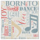 ¿Bailar tu pasión? Esta tela genial con un diseño de nube de palabras lo dice todo. Algunas de las palabras, intercaladas con notas musicales, son: respirar, vivir, amar, bailar, ritmo y nacer para bailar. Esta versión presenta tonos cálidos de rojo, amarillo suave y azul en el color de fondo que elija. Busque ID277 para ver opciones de color adicionales y productos que coincidan con este diseño.