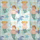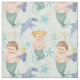 El patrón de fantasía dulce incluye las sirenas infantiles. El pequeño Mer-boy y Mer-chica nadan con lindos delfines, peces estrella y caballitos de mar sobre un fondo de maleza azul acuático.