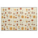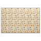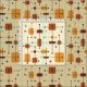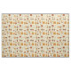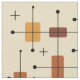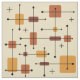 Este diseño moderno inspirado en la era atómica de mediados de siglo tiene líneas audaces y formas geométricas en tonos naranja y amarillo