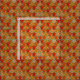 Esta tela tiene un diseño art deco de tulipanes de pentagones y trapezoides en diferentes tonalidades de naranja.