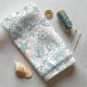 Un divertido collage veraniego de elementos náuticos y texto que incluye ancla, gaviota, pez estrella y muchos más, todo en verde salado suave con remolinos y acentos onantes en color azul polvo y rosa melocotón. Crea una casa de playa o un patio, ropa de playa o de barco con este llamativo patrón nuevo. Busque ID840 para ver otros productos con este diseño y opciones de color adicionales.