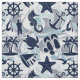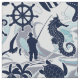 Un divertido patrón veraniego de elementos náuticos incluyendo ancla, gaviota, pez estrella y muchos más, todo en azul marino con remolinos y acentos azules ondulantes. Crea una casa de playa o un patio, ropa de playa o de barco con este llamativo patrón nuevo. Busque ID839 para ver otros productos con este diseño y opciones de color adicionales.
