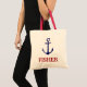 ¡Este tote está seguro de conseguirle porciones de cumplidos en la playa! El fondo ofrece un ancla de los azules marinos en el centro. Hay una correa roja, y un nombre completamente adaptable en la parte inferior en una sombra del rojo.