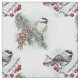 Un par de pollos regordetes sentados en ramas mientras una suave nieve empieza a caer. Un gran diseño para unas vacaciones perfectas, o almohadas, cortinas o cualquier otra cosa que puedas imaginar.