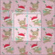 Pequeños Navidades cortos renos con sombreros de Santa y pañuelos en fondo rosa claro