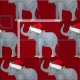 Hermosa tela de elefante rojo para Navidades con adorables elefantes en un gorra de Santa Claus.