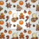 Galletas de pan de jengibre acuáticas con naranjas de acuarela, rodajas secas de naranja, nueces y una taza caliente de arte de chocolate de Navidades. Estrella de Navidades de pan de jengibre, árbol de Navidad, caña de caramelo y galletas de pan de jengibre. Un bonito y acogedor patrón de aromas de pan de jengibre para Navidades.