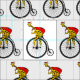 Un personalizado gracioso de una jirafa, montando en bicicleta vestido y Santa Claus y cargando un gran saco de regalos de Navidades. Si quieres ayuda para personalizar este diseño, por favor contacta conmigo, hay un botón de preguntar a este diseñador, justo debajo de este texto. La tierna y divertida jirafa está montando una bicicleta vintage de un penique.