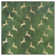 Este diseño de vacaciones Navidad tiene renos metálicos de oro en un fondo verde.