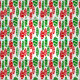 Esto tiene un patrón repetido de ovales en rojo y verde con ovales blancos dispersos en un campo de blanco.