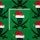 Los Navidades de Guay crían tela con un patrón de vacaciones verdes de un cráneo con un gorra rojo de Santa Claus. Me gusta este lindo regalo de Navidad.