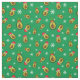 ¡Feliz Navidad en julio! Tela verde oscuro adornada con copos de nieve blancos y aguacates adorables con gorras de santa y elfo. Perfecto para hacer tu ropa de barbacoa de playa de verano o decoración