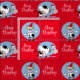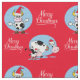 Vacas personalizados blancas y negras con sombreros Santa sobre tela con texto navideño Feliz El color de fondo de esta tela se puede cambiar usando el editor de colores.