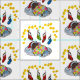 Un lindo ratoncito durmiendo y esperando que Santa venga con medias y luces pintadas con técnica sumie con tinta sumi sobre papel de arroz.