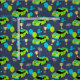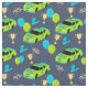 Con esta tela estampada, hay algunos regalos personalizados y decoración para fiestas de cuarto cumpleaños. Cuenta con ilustraciones de coches de carreras de coches estándar en color verde lima y azul brillante con el número 4 en ellos y el lema NECESIDAD 4 VELOCIDAD. Junto con los coches se están coordinando globos de color verde limón y azul brillante, trofeos, cascos de carreras y banderas a cuadros. Los ilustraciones están colocados sobre un fondo azul marino.