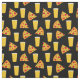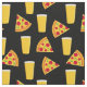 Tela negra con patrón de jarras de cerveza y porciones de pizza de pepperoni