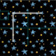 Hermosa tela negra con un patrón de estrellas azules y círculos amarillos. Gran tela para el tejido y los proyectos de mosaico. Úsalo para proyectos artesanales como almohadas, ropa o juguetes. Diseño único que no encontrarás en ninguna otra parte. Ilustrado y diseñado por Patricia Álvarez.
