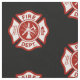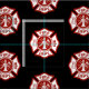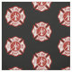 El símbolo de la cruz maltesa del rescate del fuego se sienta en un diseño modelado en un fondo negro.