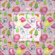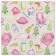 Esta tela temática de camping es perfecta para las niñas. Ilustraciones acuáticos de carpas, sillas de campamento, farolillos, malvaviscos tostados y más equipo para el alegre camper se ponen sobre un suave fondo rosado.