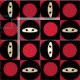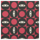 Nuestra cara linda del ninja del dibujo animado en modelo del tablero de damas con los puntos rojos y las casillas negras está haciendo frente a direcciones alternas para trabajar bien con casi cualquier proyecto de costura.