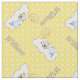 Un niño que duerme y un punto de polka amarillo personalizan la tela de un vivero con un nombre en gris que muestra a un bebé que duerme de azul claro en una nube y la luna creciente de amarillo y tu nombre. Un lindo fondo de patrón de puntos polka amarillo y blanco. Algunos elementos de Trina Clark.