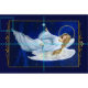 La pintura de un blanco, ángel del peck de Linda Baysinger del vuelo, con el cielo nocturno, las nubes y las estrellas azules. La frontera y las volutas metálicas de la mirada del oro rodean los bordes.