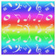 Diseño original de notas musicales en ángulo blanco en un fondo de degradado arco iris de Holiday Hearts Designs for Old Rocker Dude.