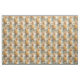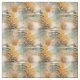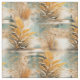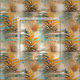 Un diseño artístico y sin fisuras de olas doradas que brillan en azul, turquesa y espuma blanca que se estrellan contra la orilla, pintadas de aceites, se combina con una hermosa acuarela de plantas acuáticas de inspiración japonesa en naranja y marrón, que se refleja en el agua.