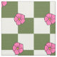 Tela Olive Pink Floral Checkerboard Polyester Fabric