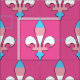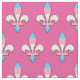 Tela con símbolo fleur-de-lis (flor de flor de lirio) con rayas de arcoiris rosas, azules y blancas de bandera transgénero; diseño de orgullo trans en fondo rosa