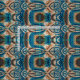 Decorativo patrón asimétrico étnico de los nativos del suroeste en tonos turquesa, dorado verde y tierra y marrón.