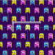Cute monstruos alienígenas coloridos tejidos con motivos repetidos. Arte y diseño por www.mylittleeden.com