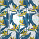 Tela Pájaro del paraíso flores en blanco
