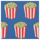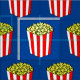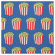 Tela con temática cinematográfica de Guay con adorables cajas de palomitas con maíz postido amarillo en un paquete rayado rojo y blanco. fondo azul bonito para una noche con las estrellas. Haz cortinas de película o ropa fresca con este divertido patrón.