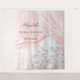Elegante, clásico, glamuroso y estilo femenino la tela para ducha de novia. Seda rosa suave, estampado de satén como fondo. Decorado con un vestido de novia blanco. Personaliza y añade un nombre y fecha.