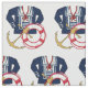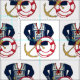 Ya sea que vivas en los Grandes Lagos, cerca de la costa con vistas al mar, o que estés totalmente sin litoral, la mayoría de nosotros hemos tenido la fantasía (¡o privilegio!) de ser capitán de nuestro propio barco, de navegar en los puertos de Amalfi, Monte Carlo o por el Hudson. Llevar un traje de moda creado con esta tela personalizado que presenta el patrón original de HoMeArts de un velero azul marino "Middy", un salvavidas envuelto de cuerda roja y un ancla dorada; es un gran iniciador de conversación con soñadores y hacedores con ideas afines.