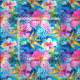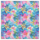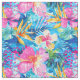 Un patrón impecable con flores hawaianas como hibiscos, pájaros del paraíso y orquídeas en un vibrante estilo acuático. El diseño capta la exuberante y exótica belleza de la flora tropical con colores ricos y vivos y fluidez artística