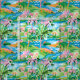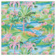 Un patrón impecable con palmeras verdes y rosas en pequeños islotes situados en el océano, representado en un estilo acuático. El diseño captura la serenidad y la esencia tropical de la vida de la isla con colores vibrantes y brochas fluidas y artísticas.