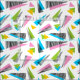 Un patrón abstracto compuesto de triángulos con algunos en color sólido y otros con varias texturas de grunge natural.