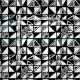Un patrón continuo dibujado a mano original compuesto de una rejilla irregular de cuadrados divididos cada uno en diagonal de formas aleatorias creando triángulos algo sombreados, algunos sin sombra y otros más decorados.
