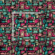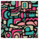 Un diseño abstracto original compuesto por numerosas formas abstractas y variadas en una paleta de cinco colores armoniosos con un fondo negro. Este diseño de patrón utiliza un mosaico de imagen gráfica vectorial que permite que el patrón sea mayor o menor.