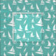 Tela azul claro y verde azulada adornada con veleros, yates y gaviotas. Ideal para los marineros, propietarios de barcos, para la decoración o vestimenta de la casa de playa.