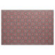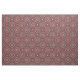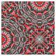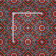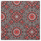 Diseño de tela vibrante con un patrón impecable de formas y líneas rojas y blancas sobre un fondo negro.
