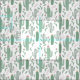 Impresión botánica de cactus con una variedad de cactus floridos, con flores tiernas y hojas compuestas. En blanco.