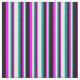 Este diseño presenta un patrón a rayas con colores como cian oscuro, blanco, fucsia y negro.