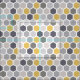 Patrón de abeja. Mostaza gris/gris, blanco y amarillo.